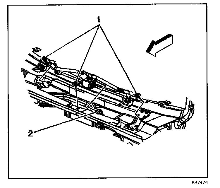 2. Install the bolts (1) retaining the wiper transmission to the vehicle.