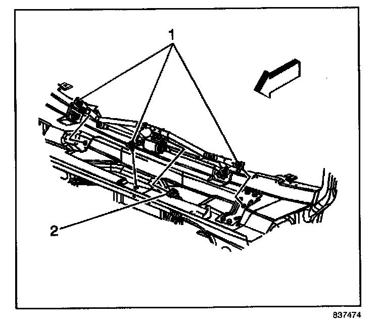 2. Remove the bolts (1) retaining the transmission to the vehicle.