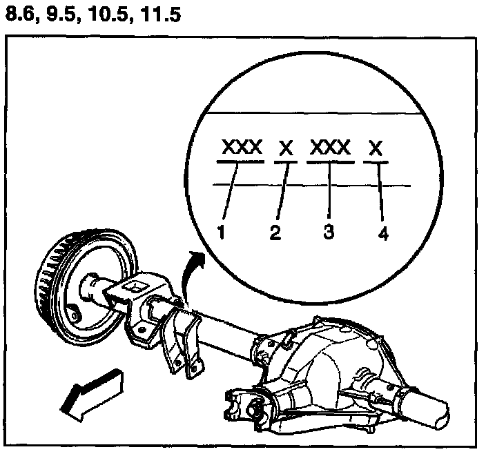 AXLE IDENTIFICATION - REARRear axle identification information is stamped on the right side axle tube near the differential housing. The information includes the following: