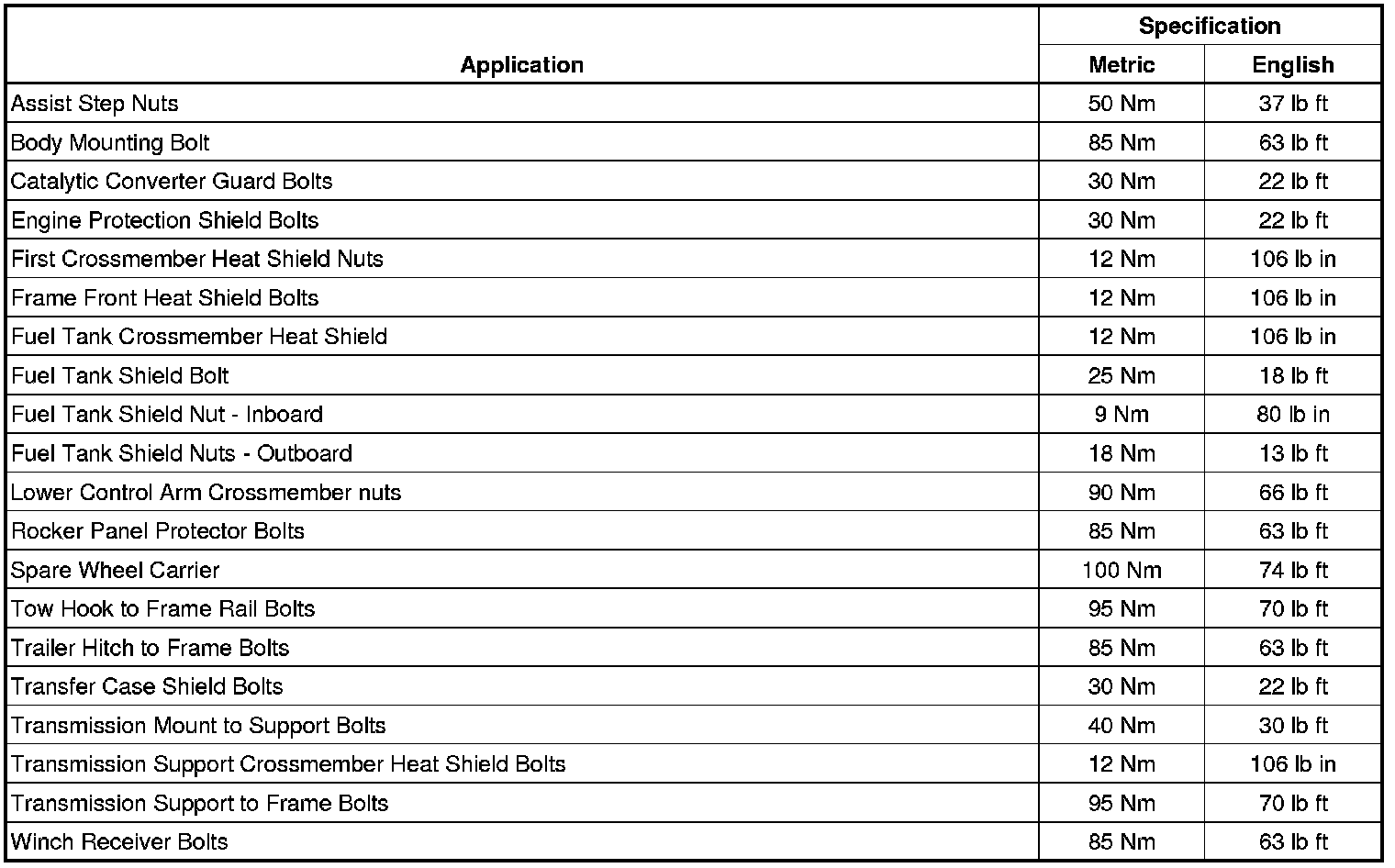 Fastener Tightening Specifications