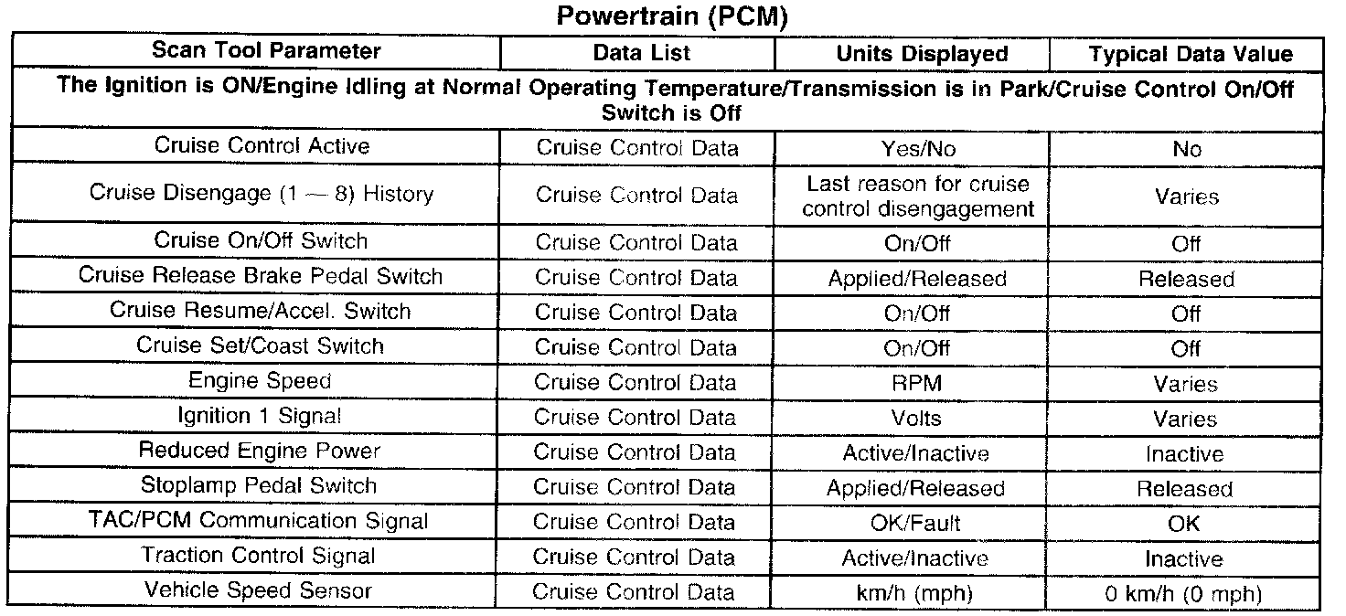 Scan Tool Data List Powertrain (PCM):