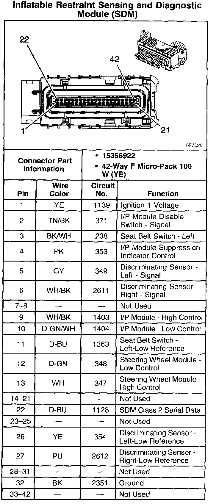 Inflatable Restraint Sensing And Diagnostic Module(SDM):