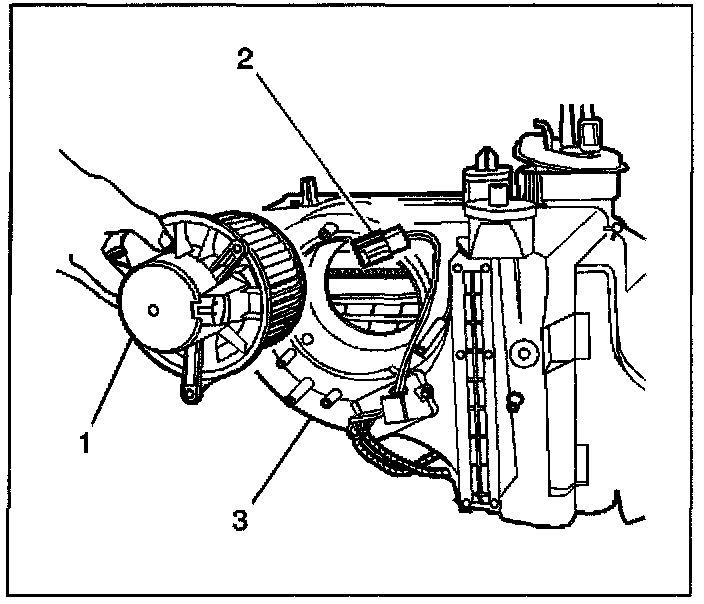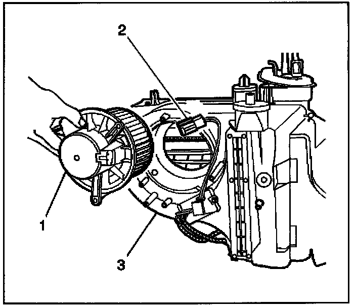 2. Disconnect the electrical connector (2) from the blower motor (1).