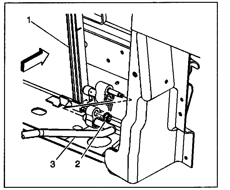 7. Remove the compressor discharge hose assembly (3) from the condenser (2).