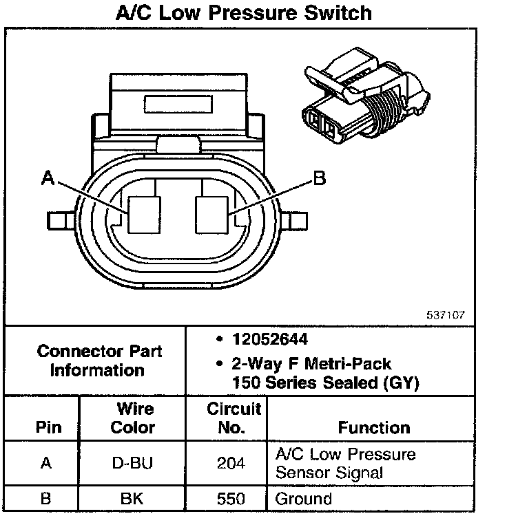 A/C Low Pressure Switch: