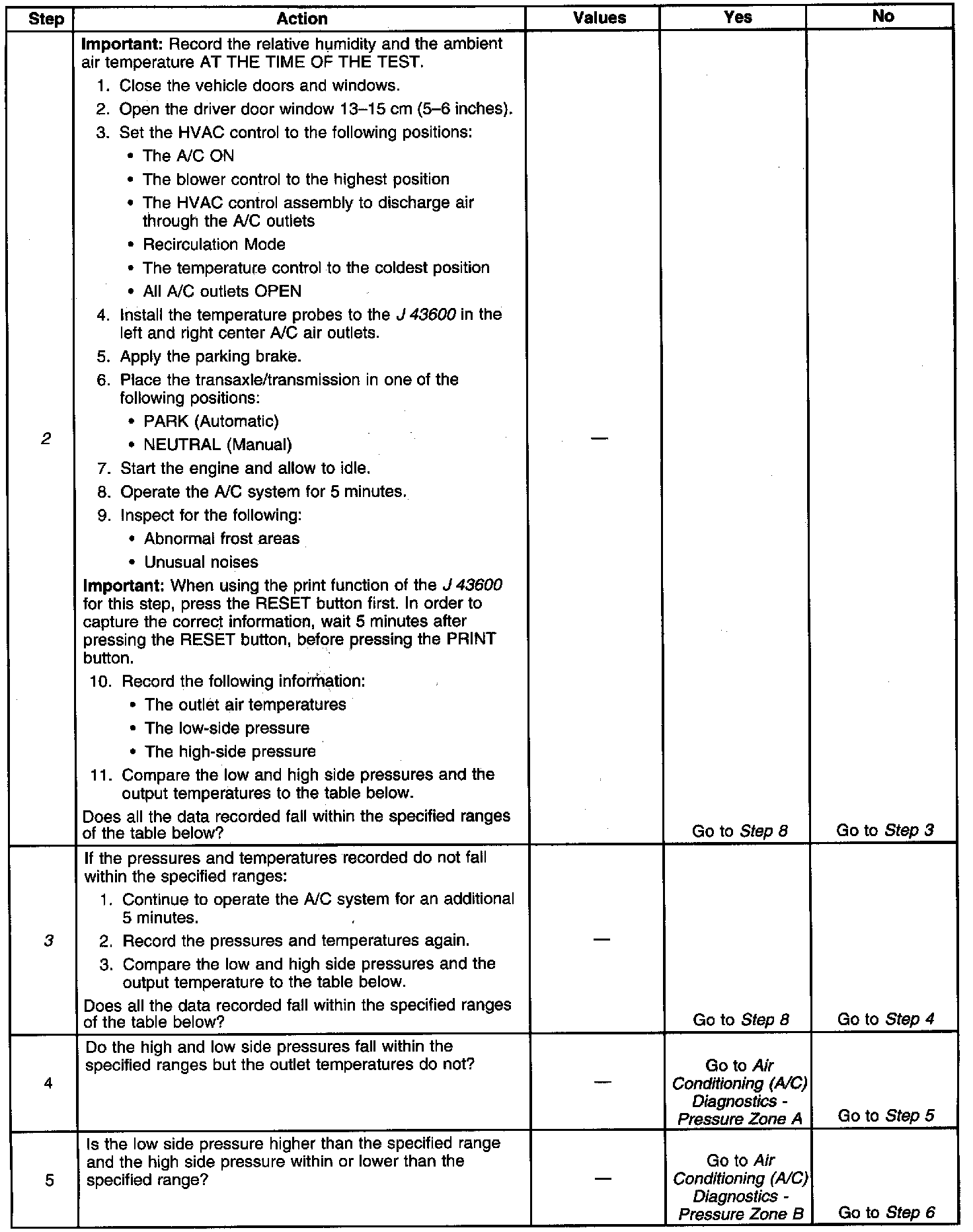 AIR CONDITIONING (A/C) SYSTEM PERFORMANCE TESTThe following test measures the A/C system operating efficiency by comparing: