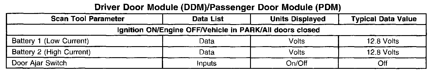 Scan Tool Data List - Driver Door Module (DDM)/Passenger Door Module (PDM):