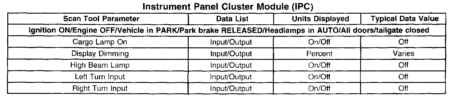 Scan Tool Data List - Instrument Panel Cluster Module (IPC):