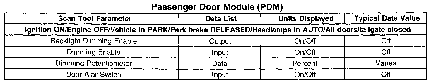 Scan Tool Data List - Passenger Door Module (PDM):
