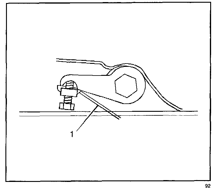 1. For vehicles equipped with a torsion bar suspension turn the bolt (1) that contacts the torsion arm clockwise to raise the and counterclockwise to lower the height adjustment. One revolution of the bolt (1) into the nut increases the Z height by approximately 6.0 mm (0.2 in).