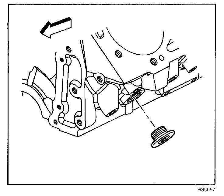 7. If a complete engine block drain is required, remove the left and right engine block coolant drain plugs.