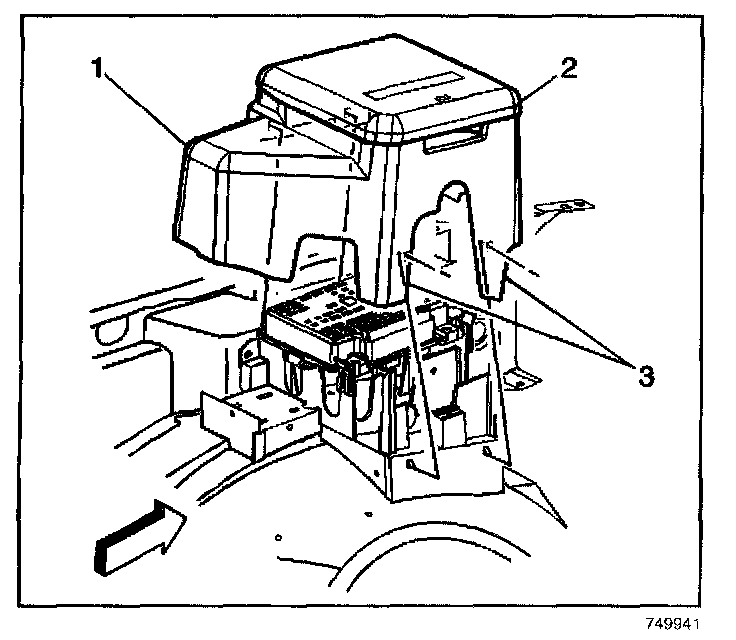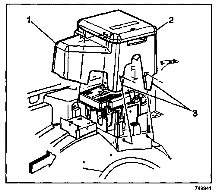 3. Remove the electrical center brace cover assemble by lifting the cover (3) outwards to clear the tabs.