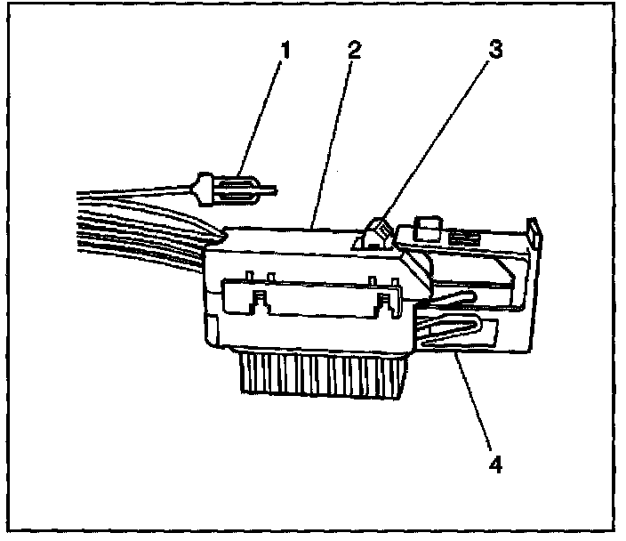 7. Disconnect the SDM wiring harness connector (1) from the SDM (3).