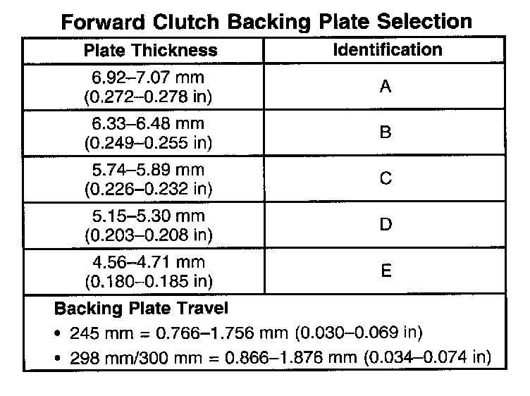 Forward Clutch Backing Plate Selection