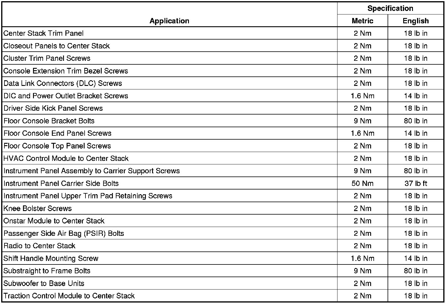 Fastener Tightening Specifications