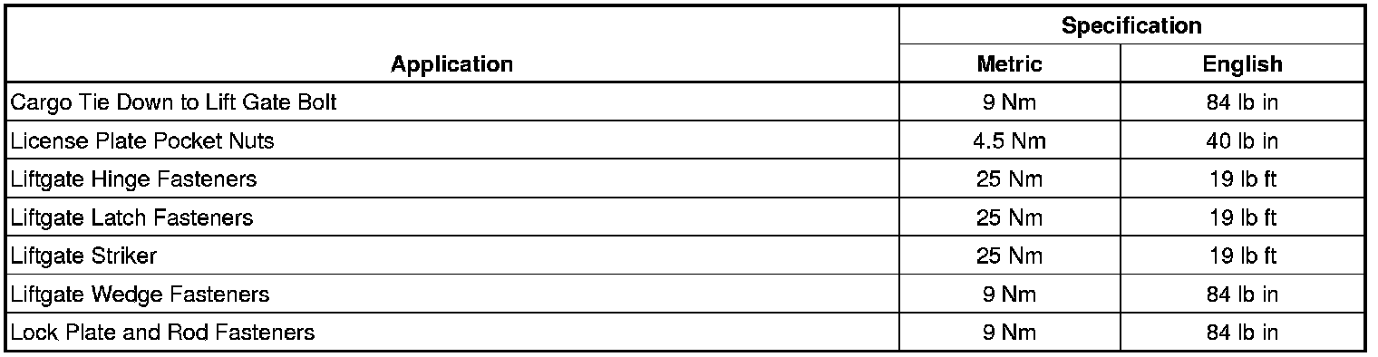 Fastener Tightening Specifications