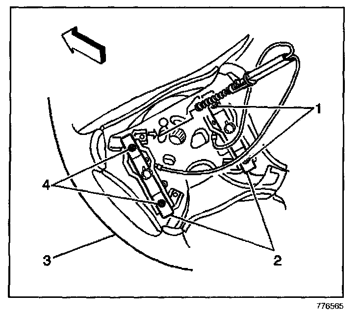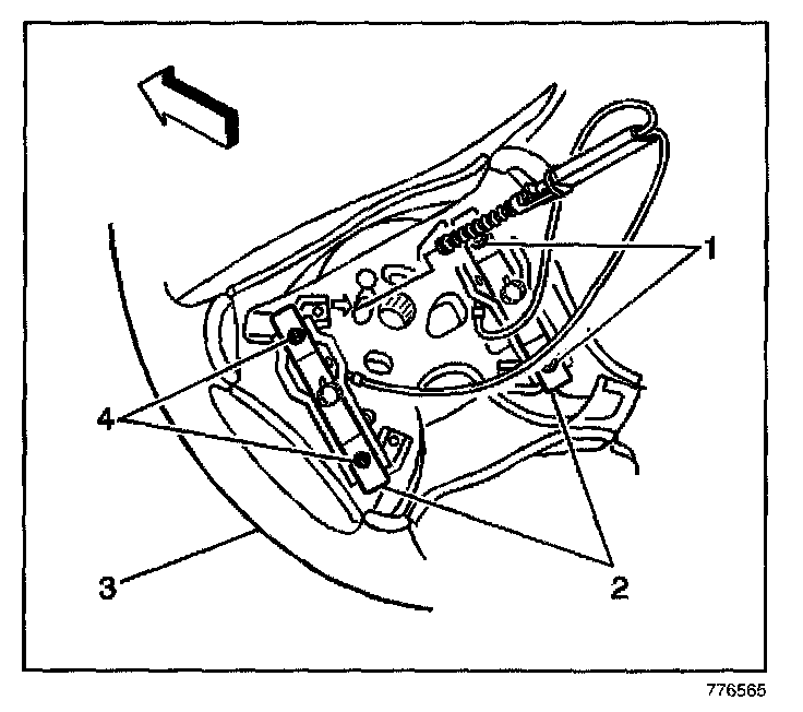 2. Connect the horn contact plate (2) captured screws (1,4) to the steering wheel (3).