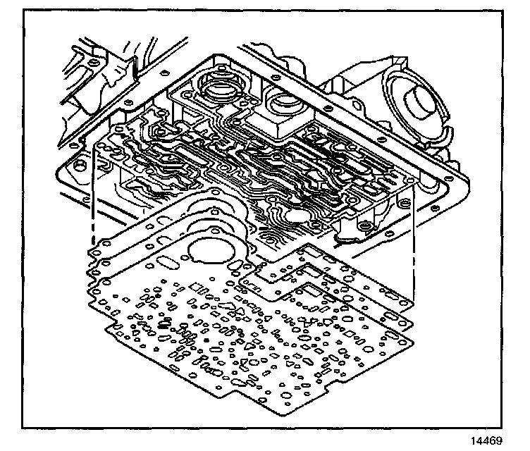 13. Remove the spacer plate to valve body gasket, the spacer plate and the spacer plate to transmission case gasket.