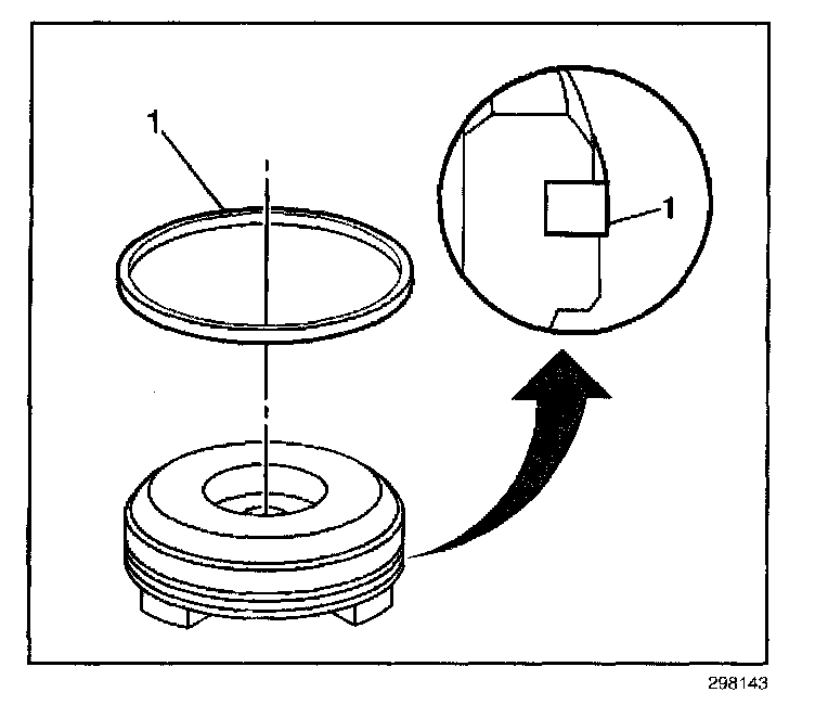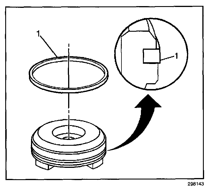 1. Install a new 3-4 accumulator piston seal (1) to the 3-4 accumulator piston.