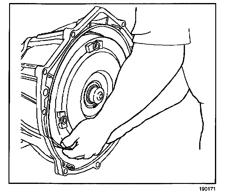 CAUTION: The torque converter weighs approximately 65 lbs. Personal injury may result if you lift the torque converter improperly.