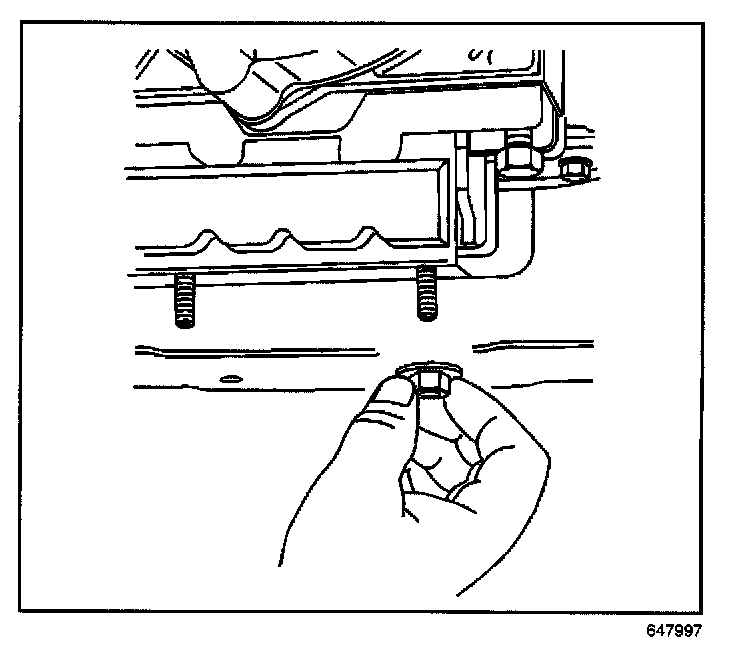3. Lower the transmission and install the two nuts securing the transmission mount to the transmission support.