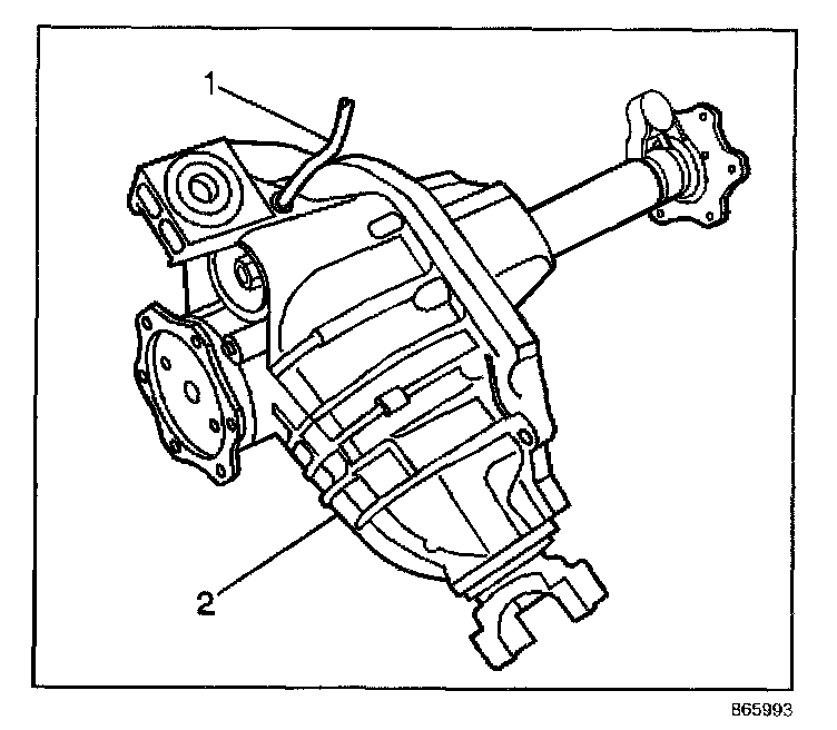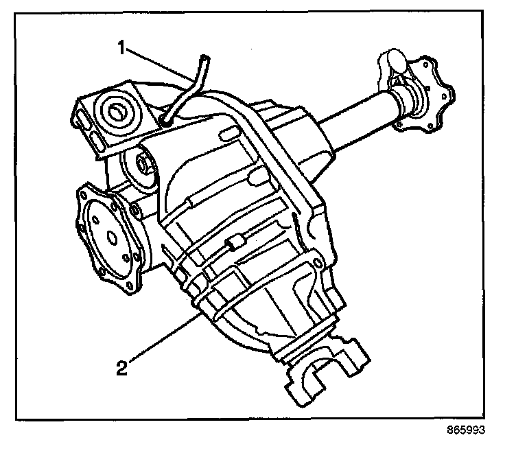 8. Disconnect the vent hose (1) from the differential carrier assembly (2).