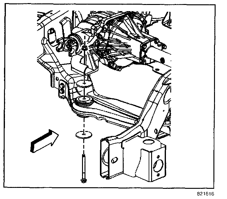 3. Install the differential carrier assembly right side axle mount bolt and nut.