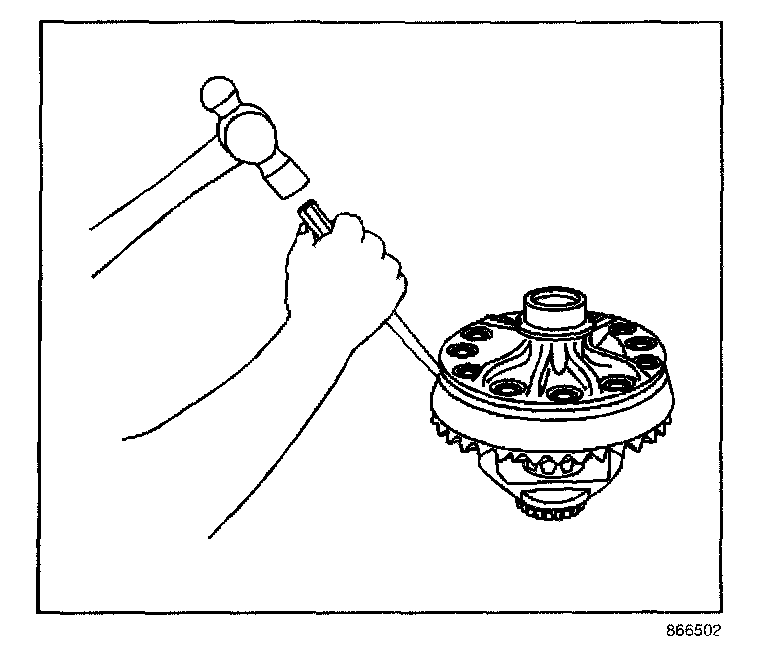 8.1. Drive the pinion gear thrust washers out from the differential case using a hammer and a brass drift.