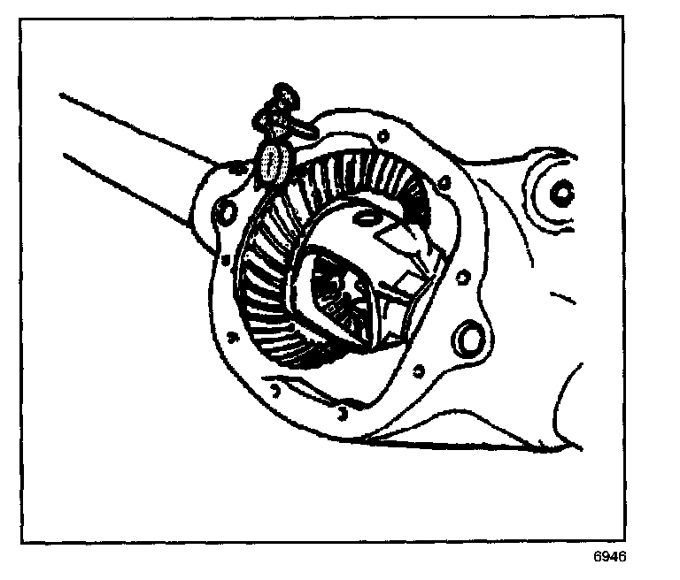 22. Once backlash and bearing preload is correct, perform a gear tooth contact pattern check in order to ensure proper alignment between the ring and pinion gears. Refer to Gear Tooth Contact Pattern Inspection.