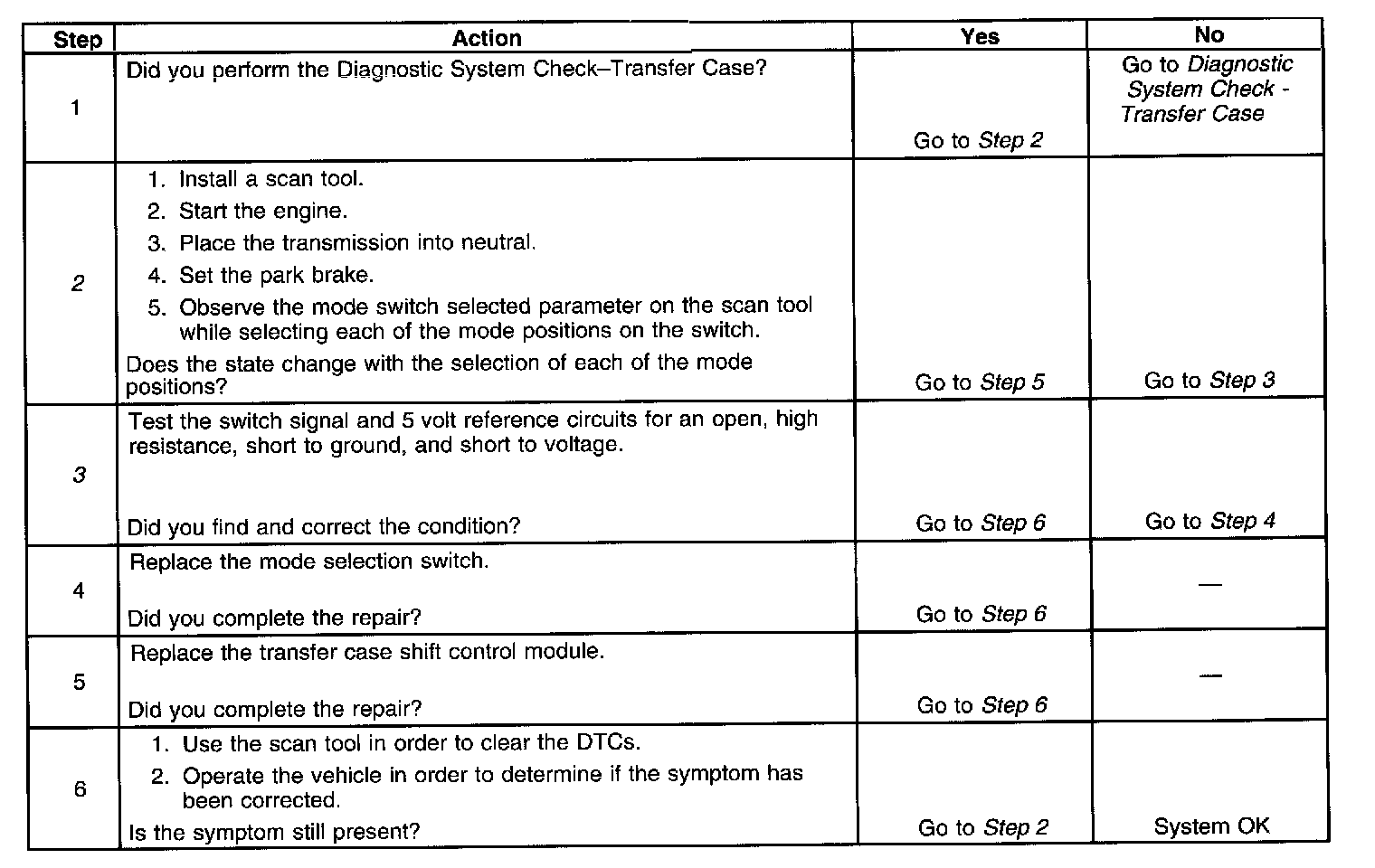 Transfer Case Shift Control Switch Inoperative
