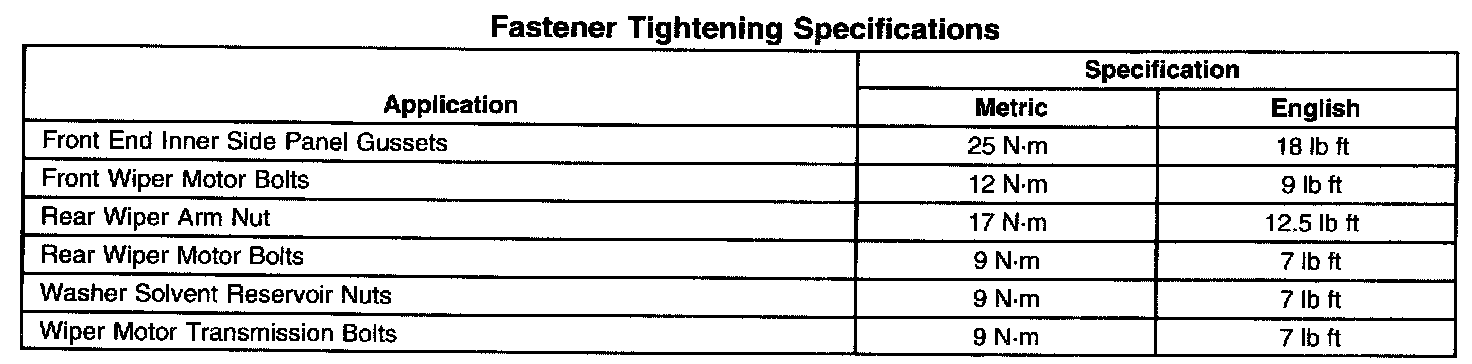 Wiper and Washer Systems: Specifications