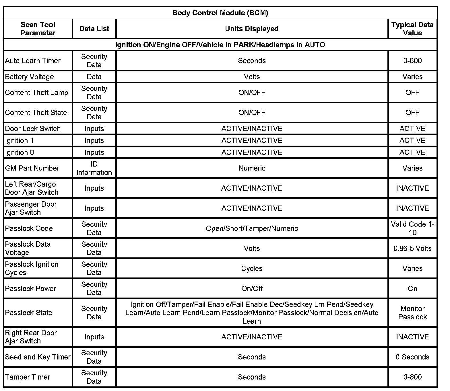 Body Control Module (BCM):