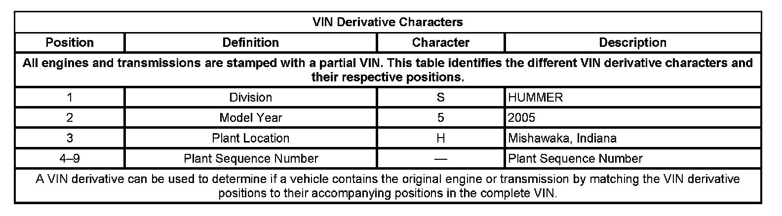 VIN Derivative Characters: