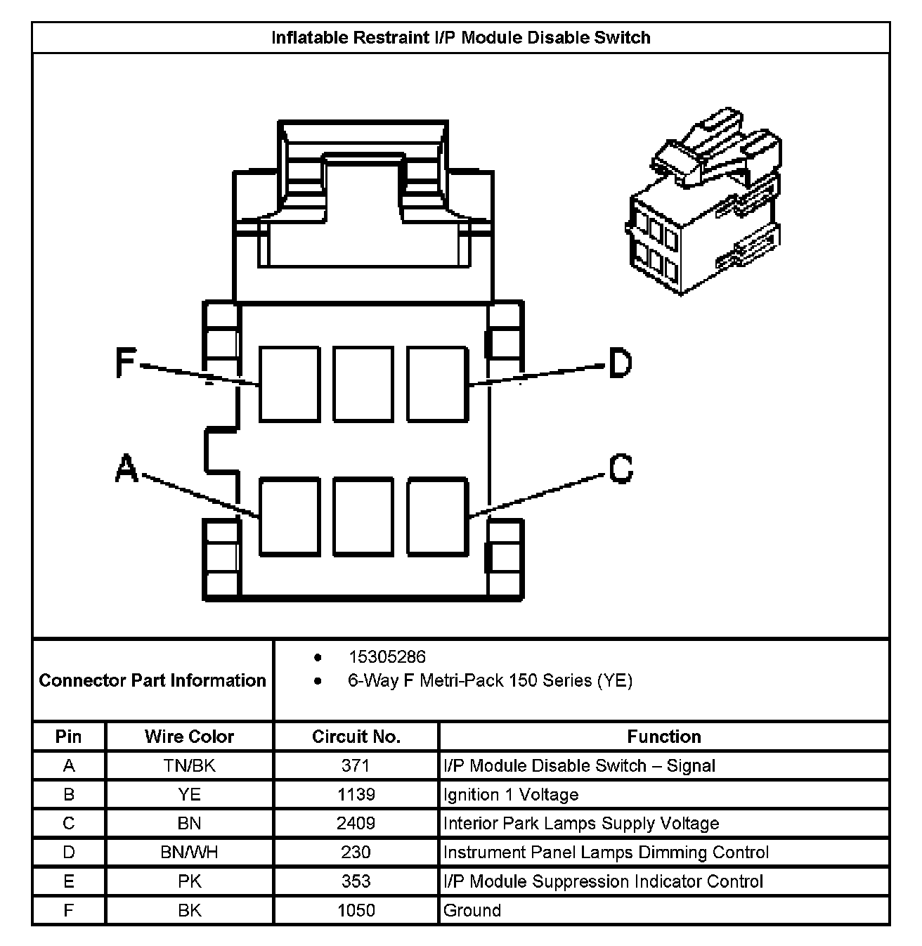 Inflatable Restraint I/P Module Disable Switch: