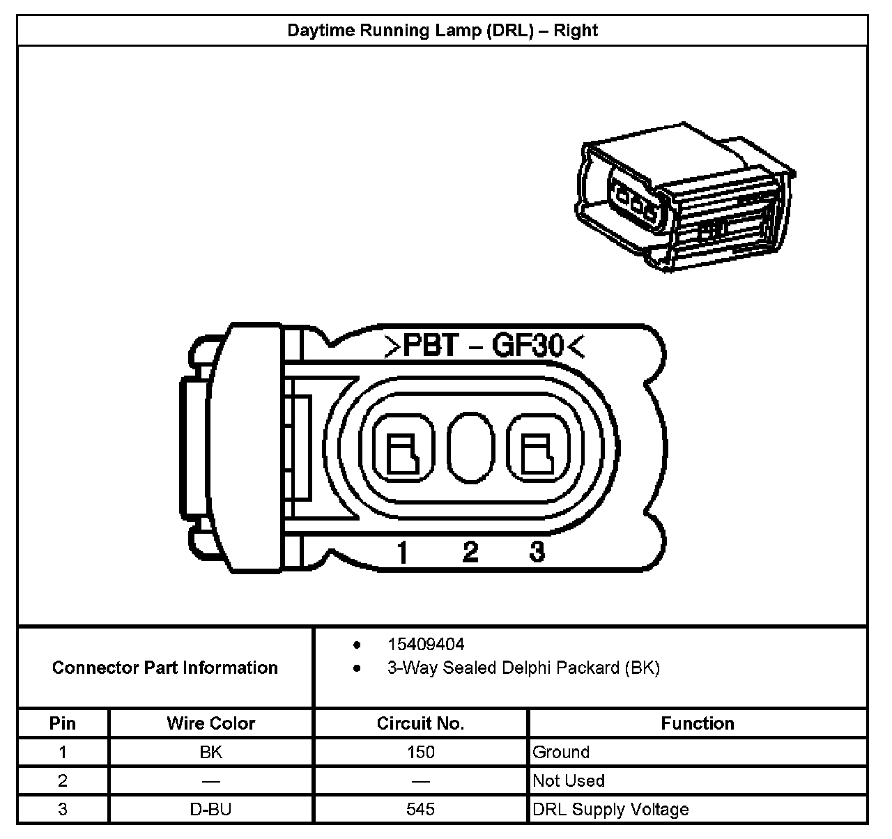 Daytime Running Lamp (DRL) - Right: