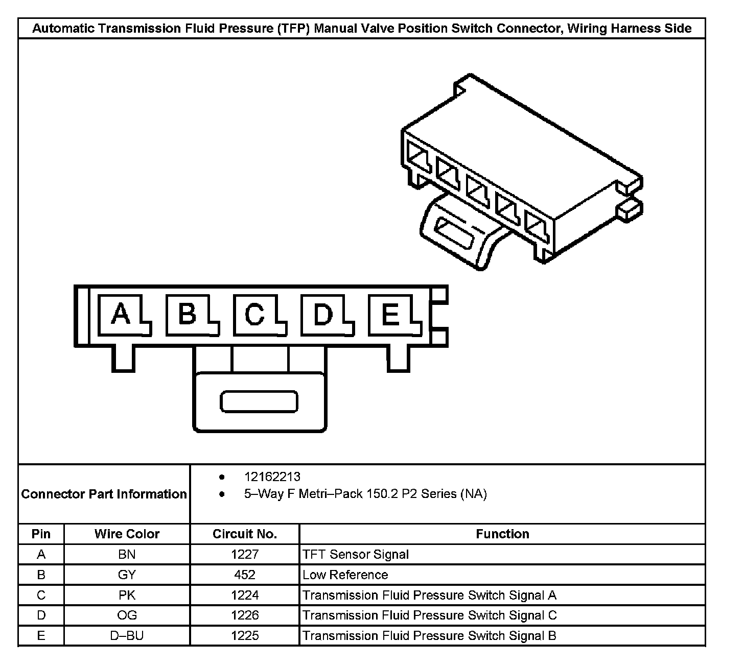 Automatic Transmission Fluid Pressure Manual Position Switch Connector, Wiring Harness Side: