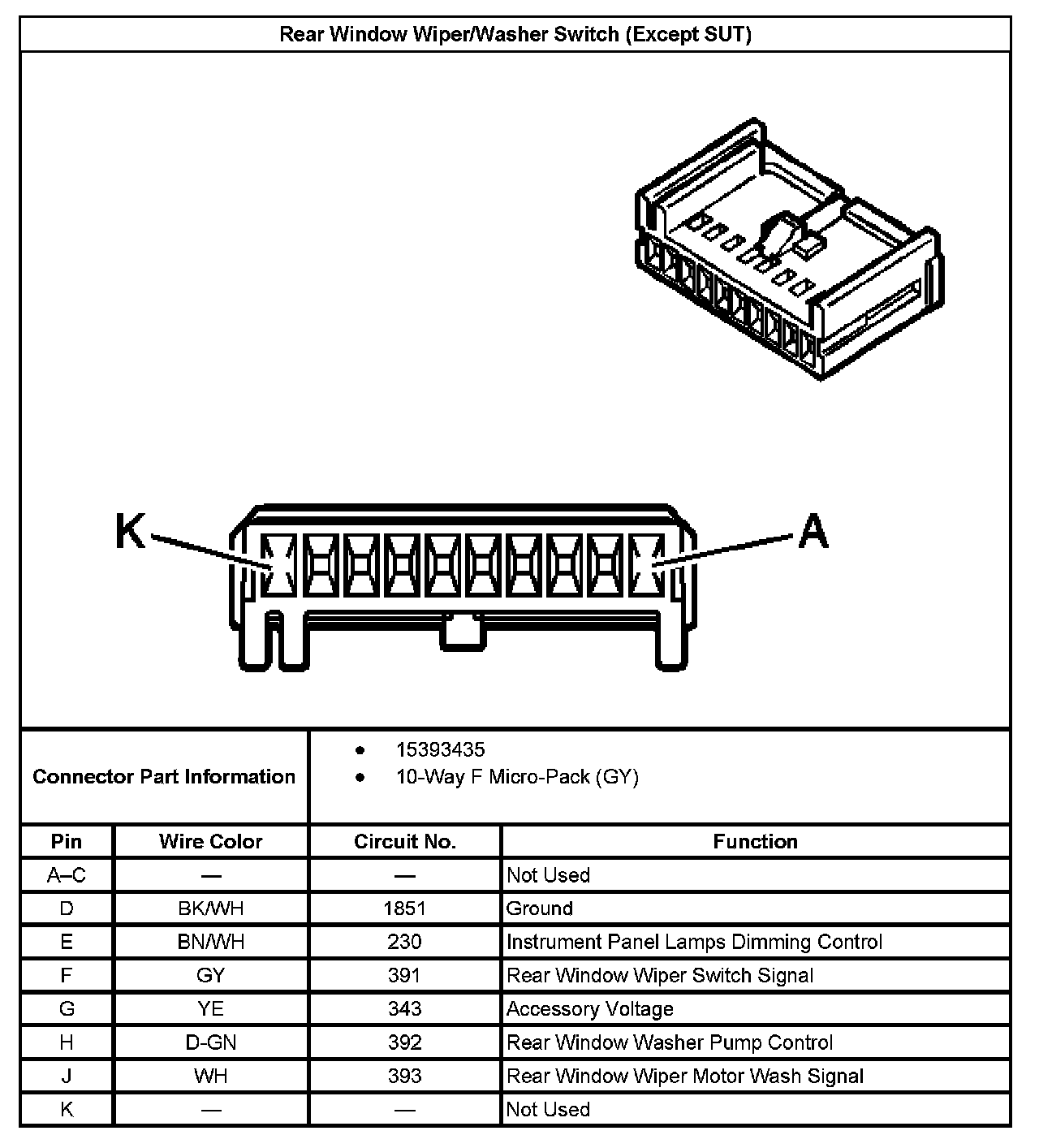 Rear Window Wiper/Washer Switch (Except SUT):