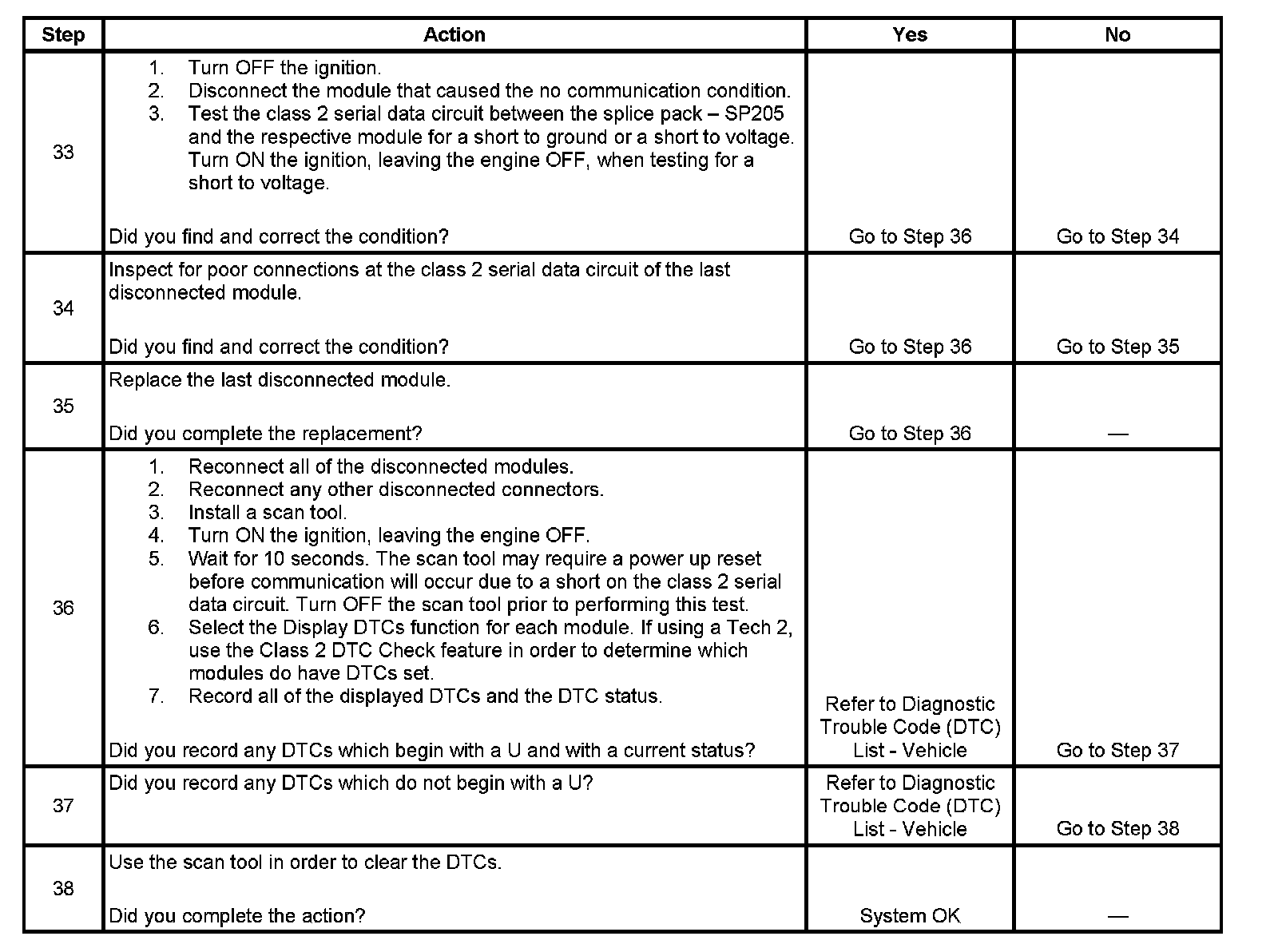 36. If there are no current DTCs that begin with a U, the communication malfunction has been repaired.