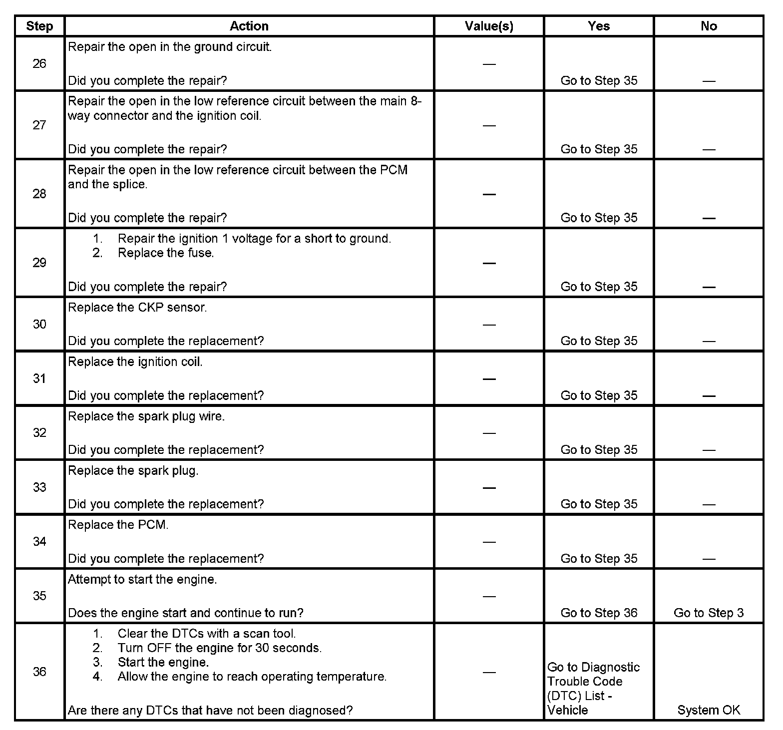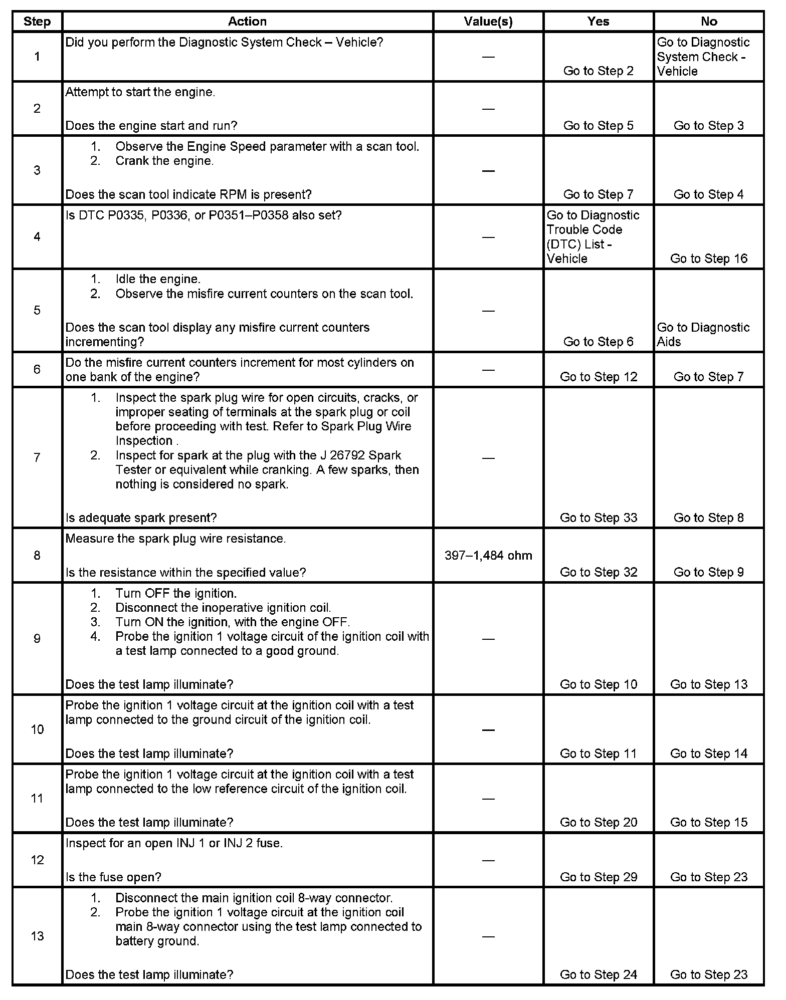12. A good indication that the fuse is open is all of the misfire current counters are incrementing on one side of the engine. Inspect the ignition positive voltage circuit for a grounded circuit. If the fuse is open and the ignition coil circuits are OK, inspect the injector circuits for being grounded.