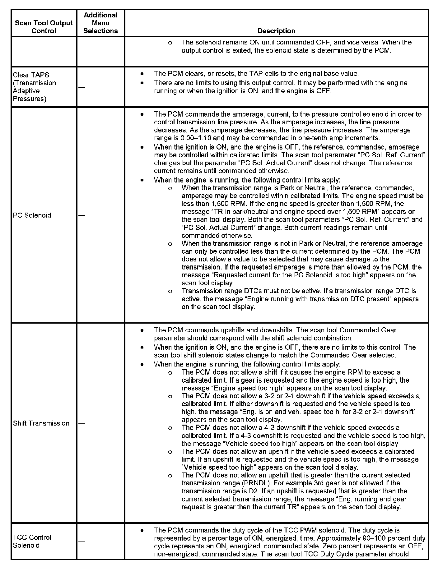 Scan Tool Output Controls