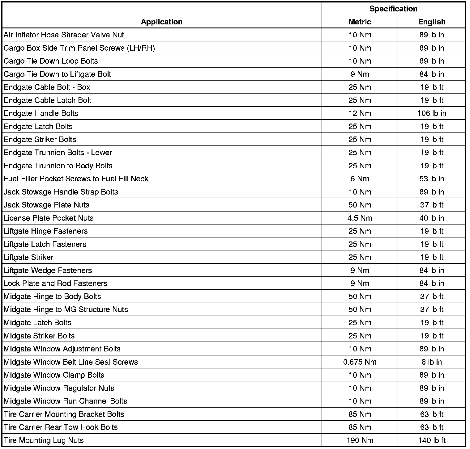 Fastener Tightening Specifications