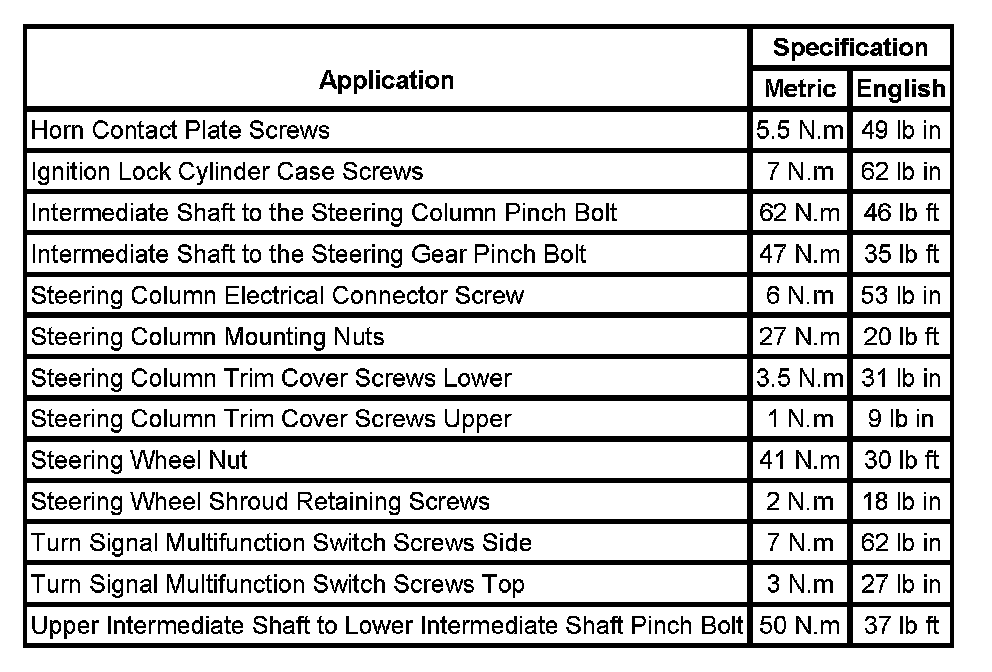 Fastener Tightening Specifications: