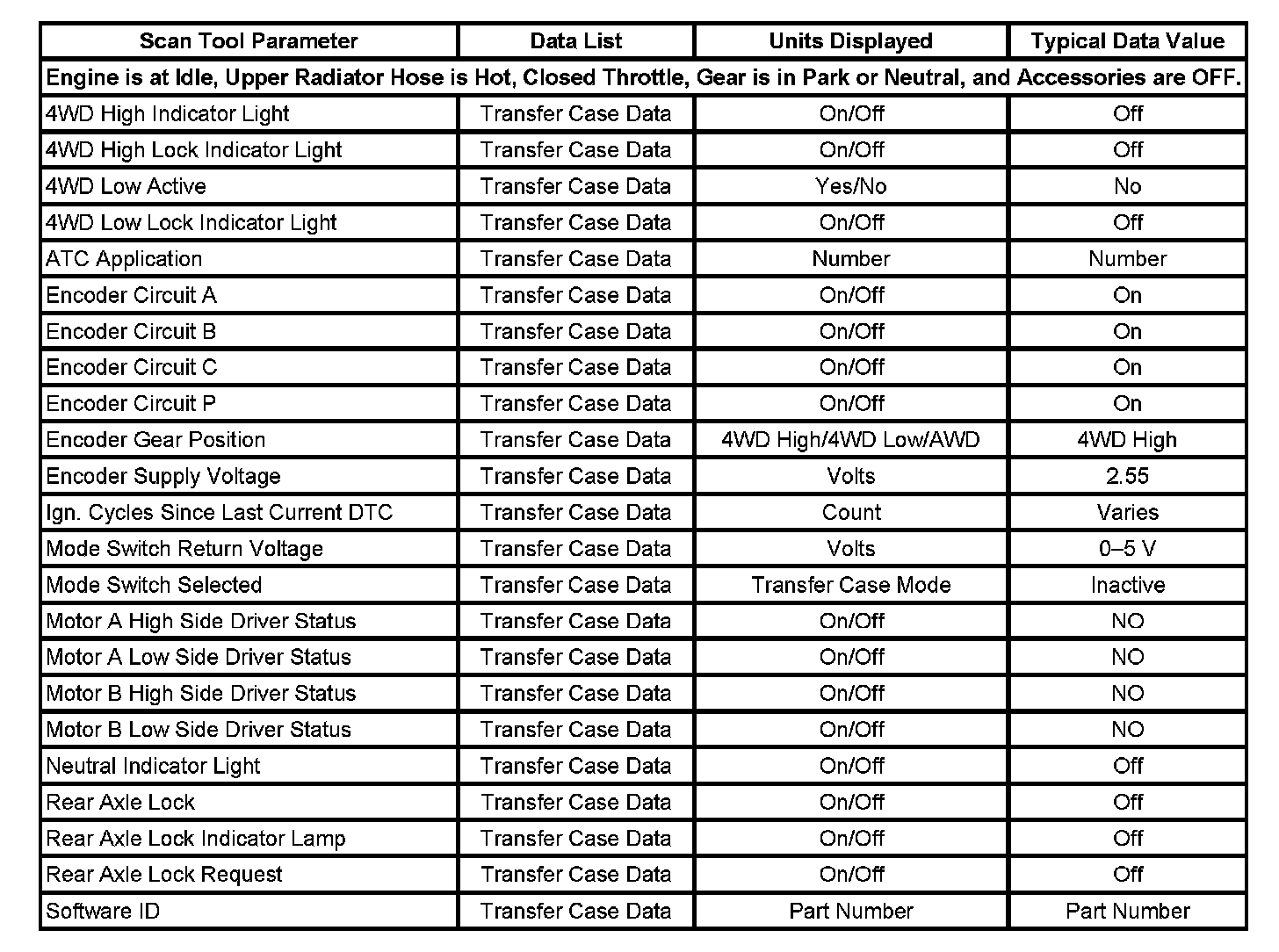 Scan Tool Data List