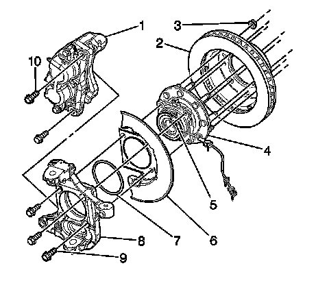 9. Remove the wheel speed sensor (5) from the hub/bearing assembly (4).