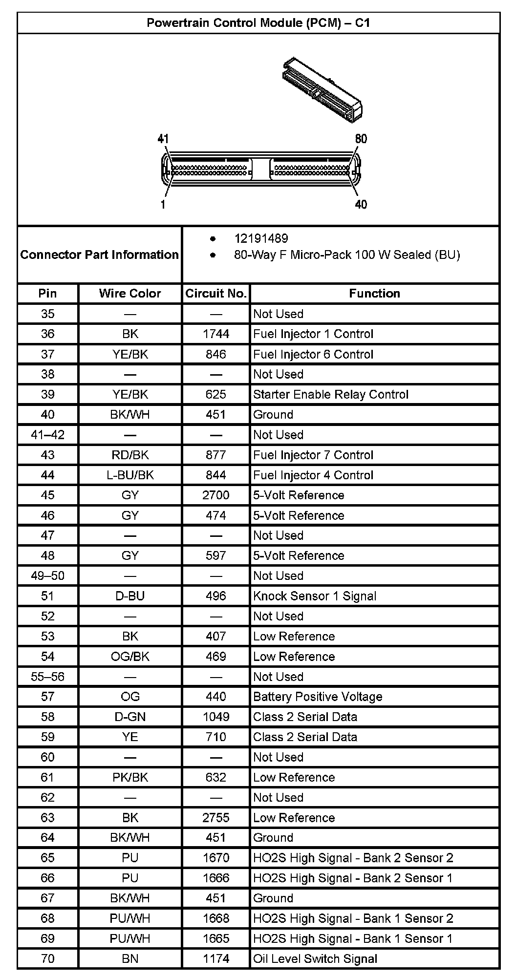 Powertrain Control Module (PCM) - C1 (Part 1):