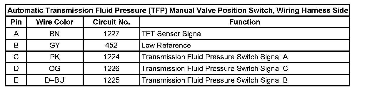 Automatic Transmission Fluid Pressure (TFP) Manual Valve Position Switch, Wiring Harness Side: