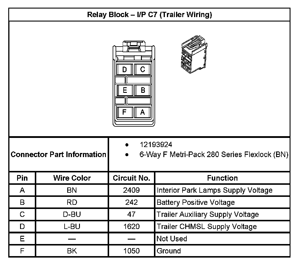 Relay Block - I/P C7 (With RPO Code USB/USC/UNR):