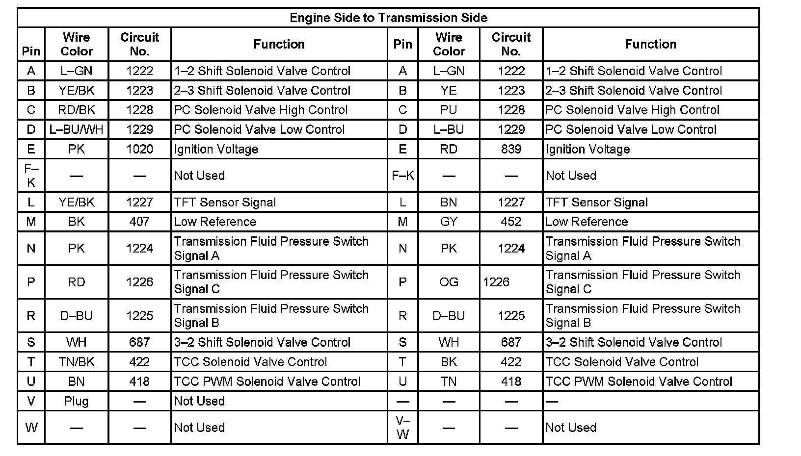 Automatic Transmission Inline 20-Way Connector End View