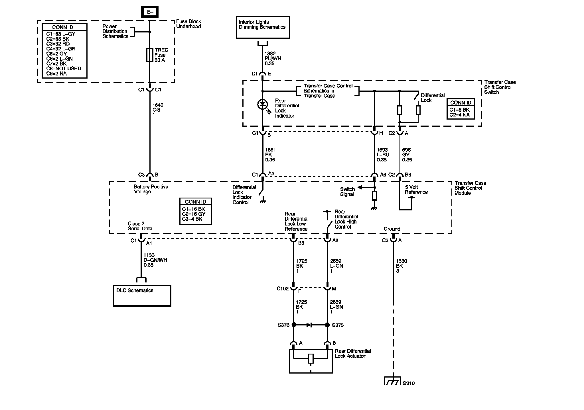The locations for the Connectors, Grounds Splices, and Grommets shown within these diagrams can be found via their numbers at Vehicle Locations.