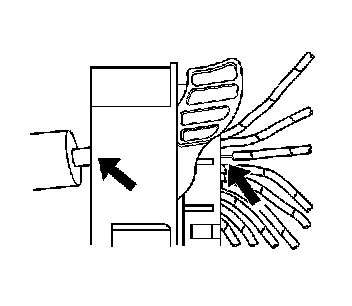 6. Insert the J 38125-13A (GM P/N 12031876-1) tool into the round canal between the terminals cavities at the front of the connector. See the release tool cross reference in the Reference Guide of the J-38125 to ensure that the correct release tool is used.